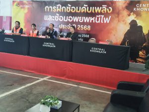 ศูนย์การค้าเซ็นทรัล ขอนแก่น นำโดยคุณฌานิกา แสนสุขสวัสดิ์ ผู้จัดการทั่วไปศูนย์การค้าเซ็นทรัล ขอนแก่น พร้อมด้วยพนักงานร้านค้าในศูนย์การค้าฯ ตลอดจนบริษัทในเครือ Central Group เข้าร่วมโครงการฝึกซ้อมอพยพหนีไฟประจำปี พ.ศ. 2568 โดยได้จำลองสถานที่เกิดเหตุ ณ บริเวณ ชั้น 1 ณ ศูนย์การค้าเซ็นทรัล ขอนแก่น ซึ่งการฝึกซ้อมอพยพหนีไฟเป็นการตอบสนองนโยบายด้านความปลอดภัยตามประกาศของกระทรวงมหาดไทย เรื่องการป้องกันและระงับอัคคีภัยในสถานประกอบการ เพื่อความปลอดภัยในการทำงานของลูกจ้างและผู้ใช้อาคาร โดยมีวัตถุประสงค์เพื่อให้ลูกจ้าง และผู้ใช้อาคาร สามารถรู้ถึงการปฏิบัติตน เมื่อเกิดเพลิงไหม้ในกรณีมีการอพยพหนีไฟ และให้การขับเคลื่อนแผนไปสู่การปฏิบัติได้อย่างเป็นรูปธรรมมีความชัดเจน เป็นไปในทิศทางเดียวกันอย่างมีประสิทธิภาพ