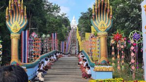 งานประเพณีดักบาตรเทโวโรหณะ นมัสการองค์พระใหญ่ ไหว้รอยพระพุทธบาท ประจำปี ๒๕๖๘ วันที่ ๘ ตุลาคม ๒๕๖๘  เวลา 07.00 น. เป็นต้นไป ณ วัดพระบาทภูพานคำ อำเภออุบลรัตน์ จังหวัดขอนแก่น และก่อนถึงพิธี นางรำจากตำบล หมู่บ้านต่าง ๆ ในพื้นที่อำเภออุบลรัตน์ และอำเภอใกล้เคียง จำนวนกว่า 500 คน ได้พร้อมกันรำถวายและบวงสรวงสิ่งศักดิ์สิทธิ์ของอำเภอ อย่างพร้อมเพรียงและสวยงาม งานประเพณีตักบาตรเทโวโรหณะ นมัสการองค์พระใหญ่ไหว้รอยพระพุทธบาท ปีนี้